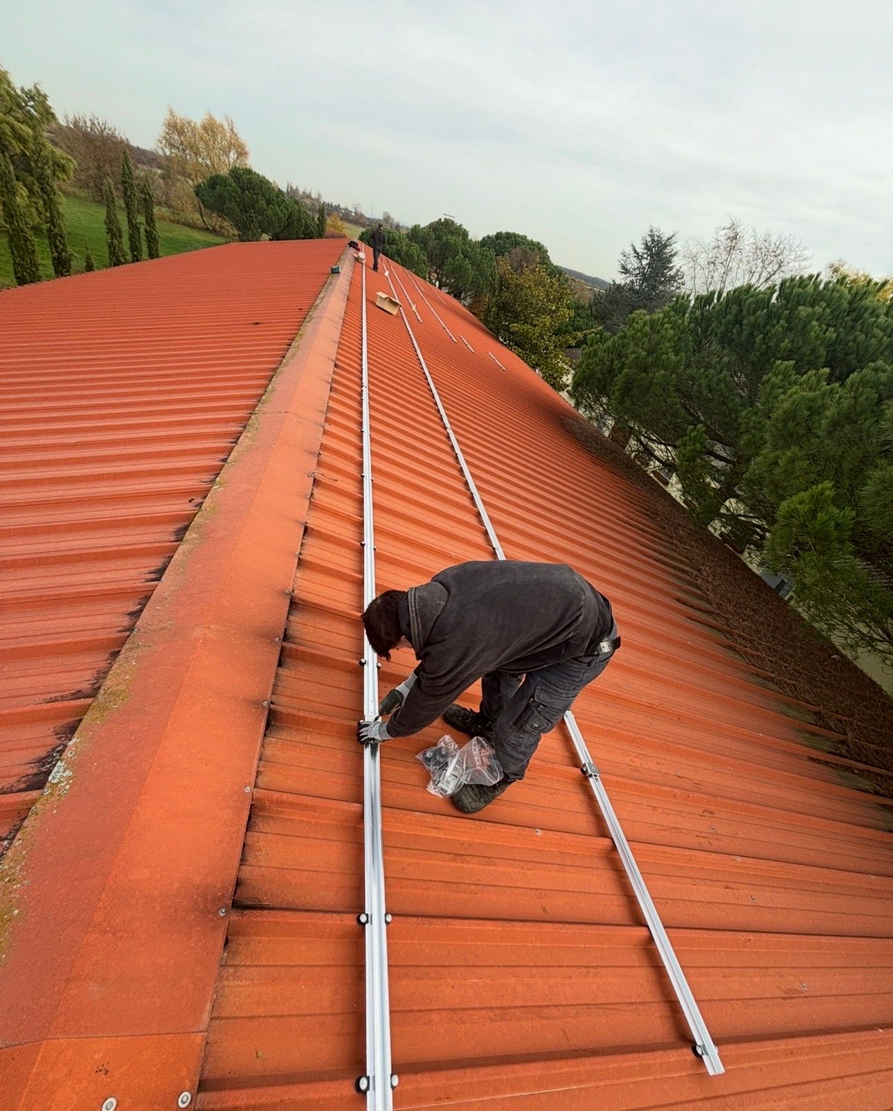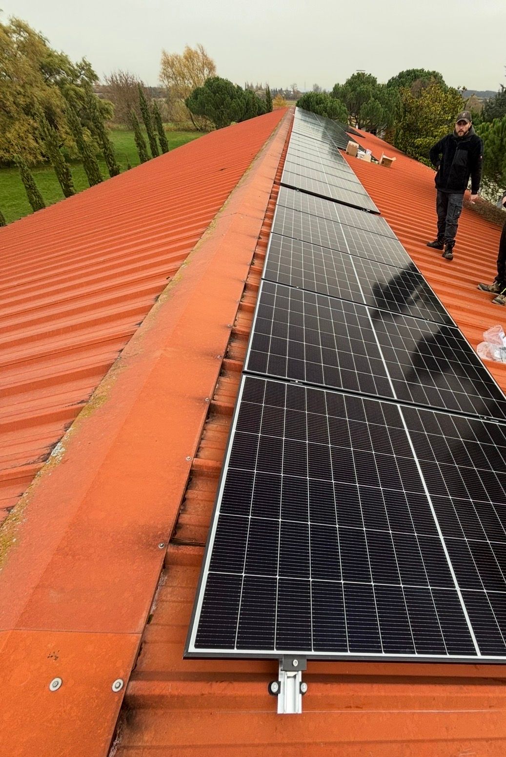 Parallel dazu wurde die Dachfläche für die Zukunft gerüstet: Die Installation der Photovoltaik-Anlage erfolgte direkt im Zuge der Dacharbeiten. Die Module wurden sturmsicher auf der Unterkonstruktion verankert, sodass das Dach nun dicht ist und gleichzeitig eigenen Strom produziert.